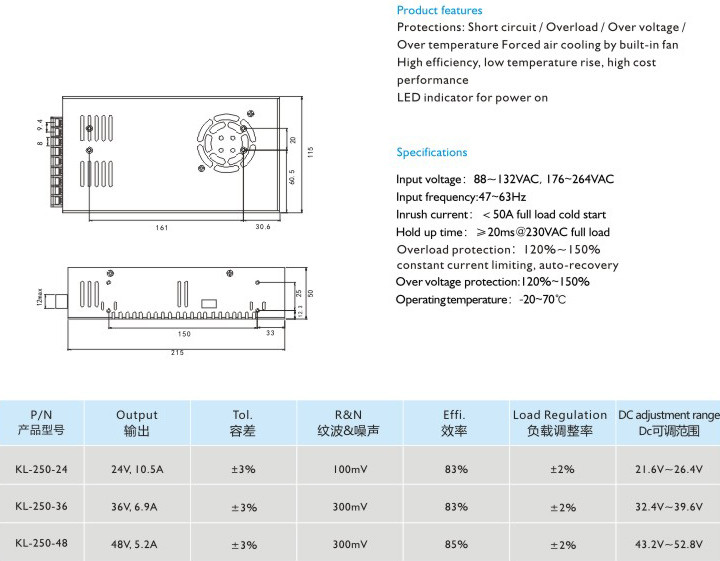 高效率、低溫升、高性價(jià)比 適用于LED顯示、工業(yè)控制 輸入電壓:88-132VAC,176-264VAC 輸入頻率:47~63Hz 沖擊電流:<50A滿載冷態(tài) 保持時(shí)間:≥20ms@230VAC滿載 過載保護(hù):120%-150%自動(dòng)恢復(fù)限;限流保護(hù),自動(dòng)恢復(fù) 過壓保護(hù):120%~150% 運(yùn)行溫度:-20-70℃" />